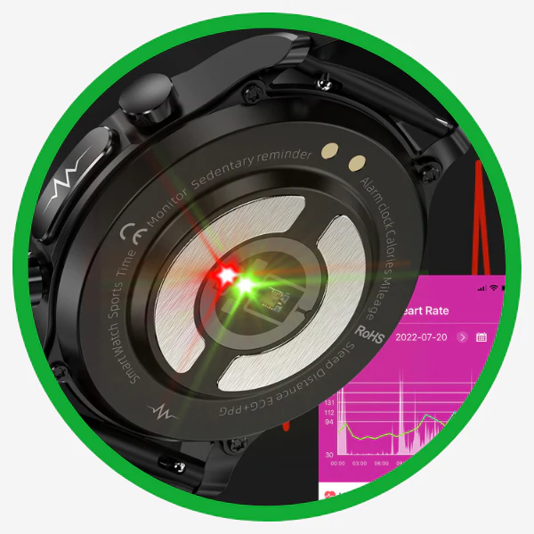 Sync-compatible with both iOS and Android smartphones, VitaWatch™ utilizes Bluetooth 5.0 technology, delivering optimized data transfer speeds, extended range, and enhanced energy efficiency. This ensures a robust, stable wireless connection with minimal power usage, enabling real-time synchronization of health metrics and device settings.