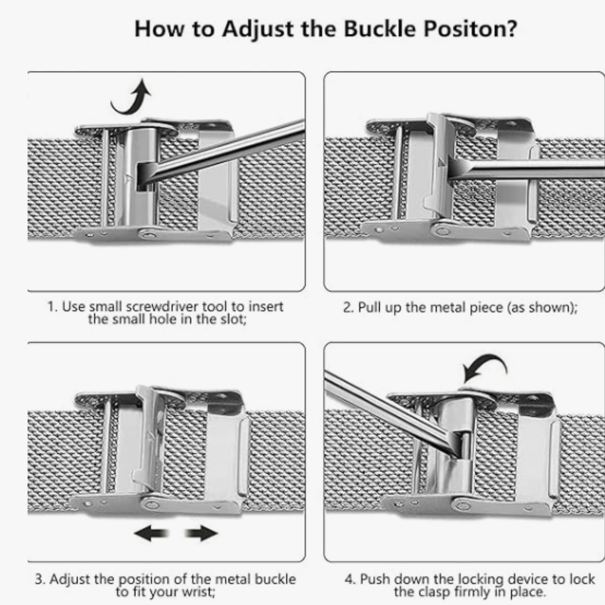 • Package included : 1 * Stainless steel Mesh watch band; 4 * Spring bars; 1 * Spring bar tool; 1 * Cleaning cloth.The Watch Straps comes with an exquisite Watch Straps box